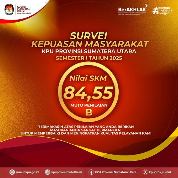 KPU Provinsi Sumatera Utara mengucapkan Terima kasih yang sebesar besarnya atas penilaian yang anda berikan, Masukan anda sangat bermanfaat untuk meperbaiki dan meningkatkan kualitas Pelayanan Kami.