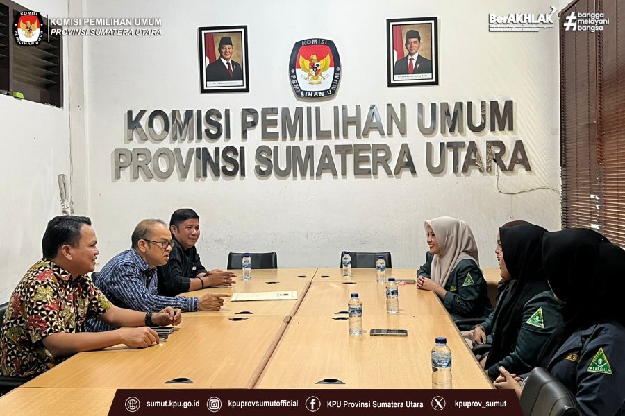 KPU Provinsi Sumatera Utara (KPU Sumut) menerima kunjungan audiensi Pimpinan Wilayah Ikatan Pelajar Putri Nahdlatul Ulama Provinsi Sumatera Utara (PW IPPNU Sumut) di Aula Kantor KPU Sumut, Jumat (26/09/2025).