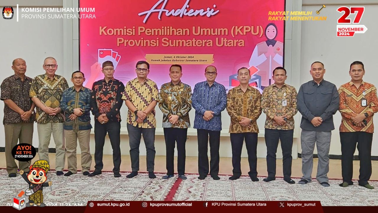 Audiensi ini diterima langsung oleh Agus Fatoni Pj. Gubernur Sumatera Utara. Dari KPU Provinsi Sumatera Utara dihadiri oleh Ketua Agus Arifin, Anggota El Suhaimi, Kotaris Banurea, Raja Ahab Damanik, dan Robby Effendi, dan Sekretaris Sapran Daulay.