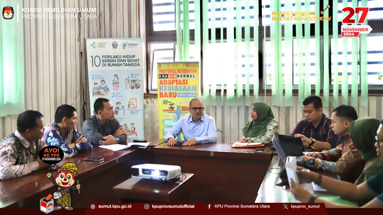 KPU Provinsi Sumatera Utara melaksanakan audiensi terkait pemeriksaan kesehatan pada Pemilihan Gubernur dan Wakil Gubernur Sumatera Utara Tahun 2024 dengan Dinas Kesehatan (Dinkes) Provinsi Sumatera Utara pada hari Jumat (09/08/2024) di Kantor Dinkes Provinsi Sumatera Utara.