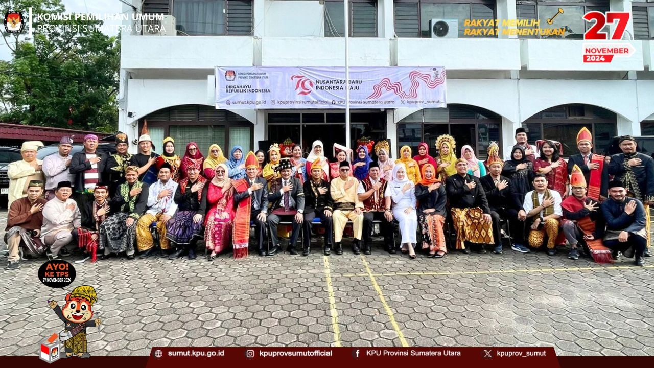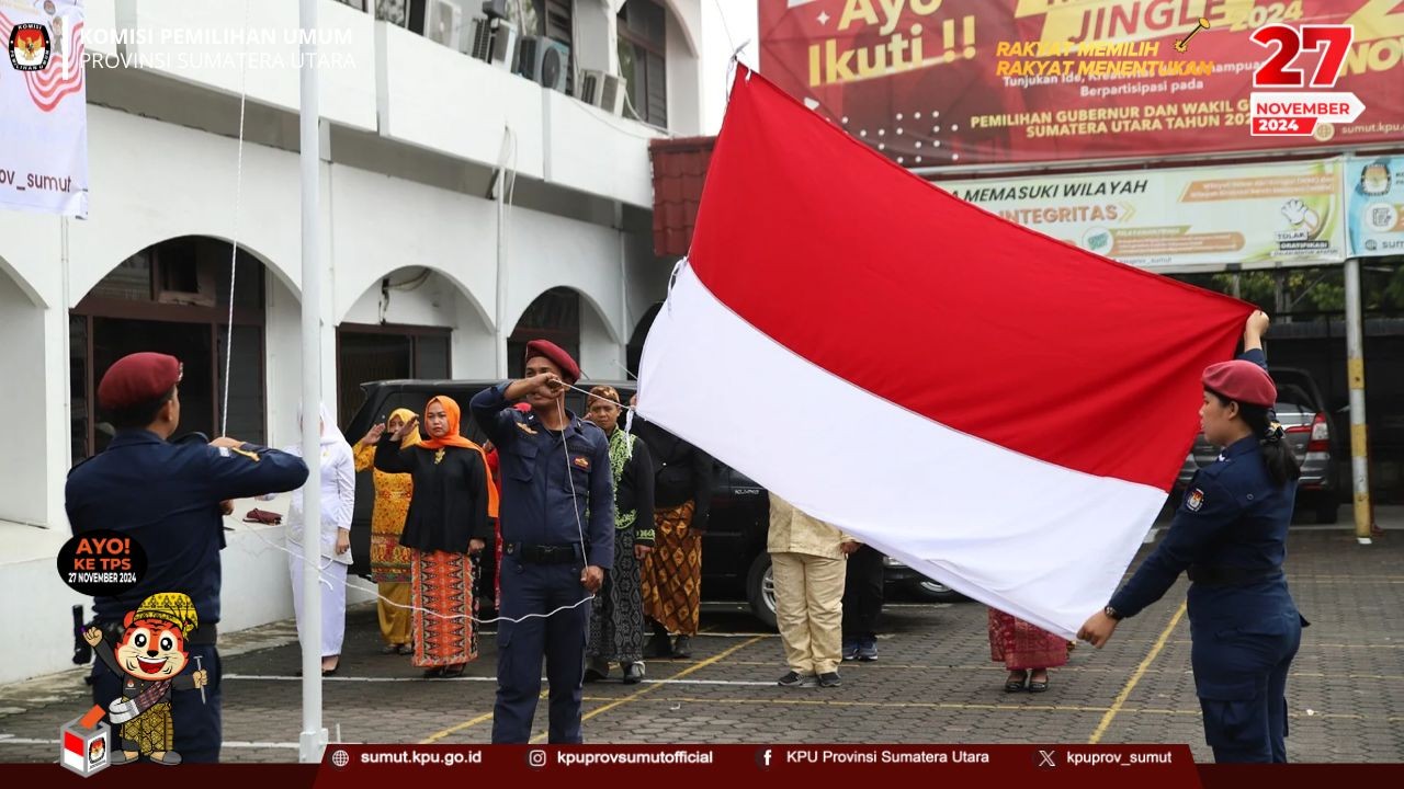 Bertindak sebagai Inspektur Upacara, Agus Arifin Ketua KPU Provinsi Sumatera Utara. Turut hadir, Anggota KPU Provinsi Sumatera Utara Sitori Mendrofa dan Kotaris Banurea, serta Jajaran Sekretariat KPU Provinsi Sumatera Utara.