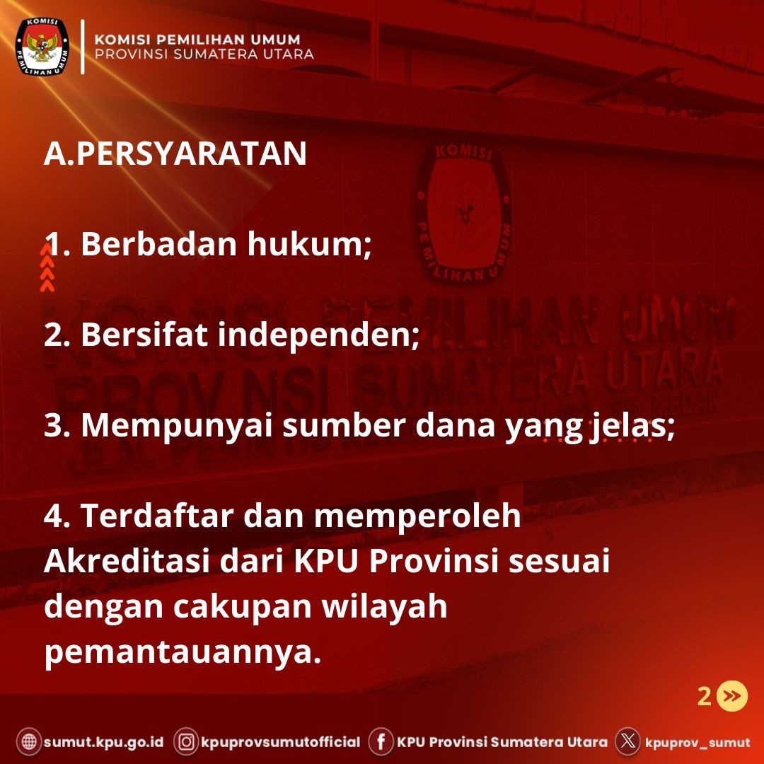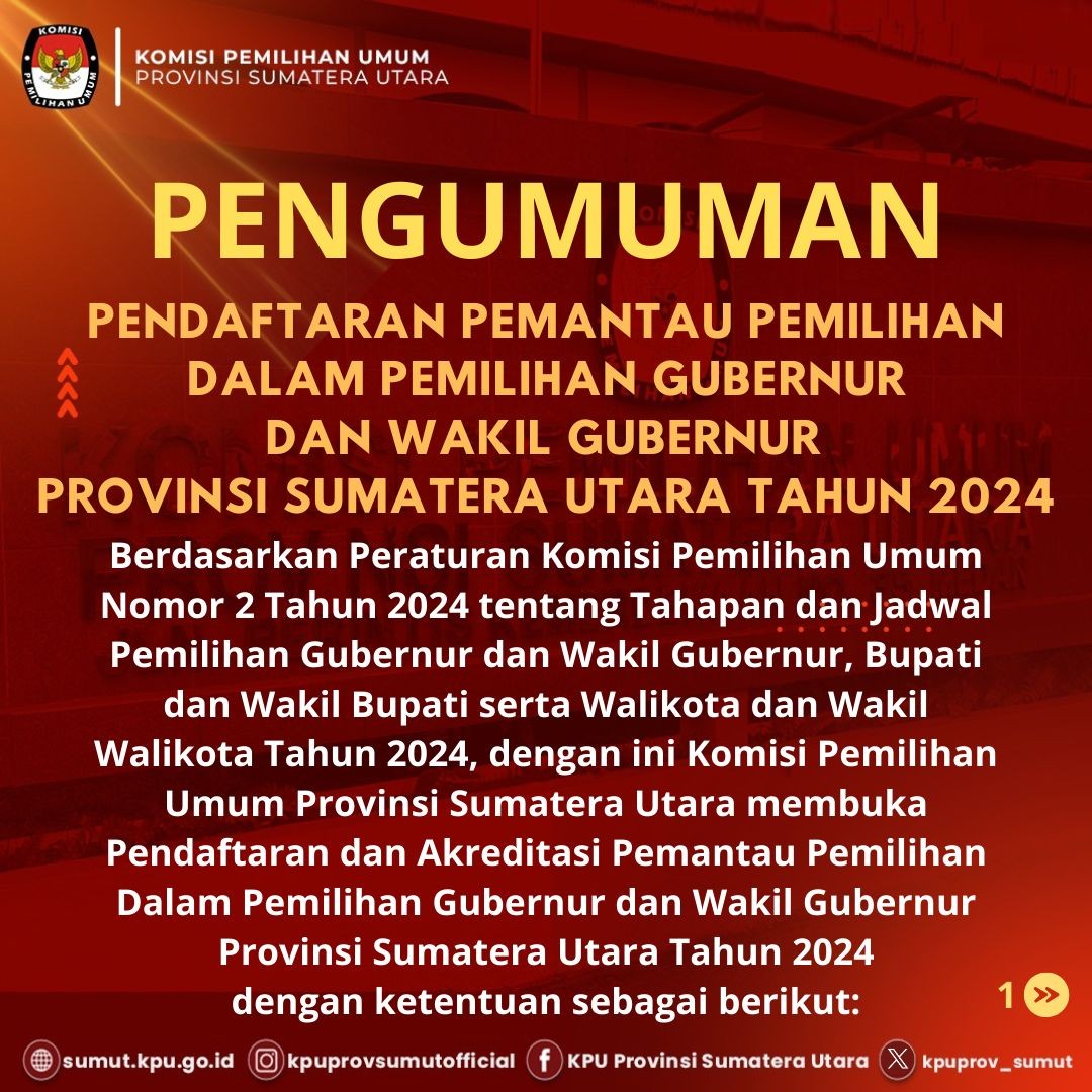 Pendaftaran Pemantau Pemilihan Dalam Pemilihan Gubernur dan Wakil Gubernur Provinsi Sumatera Utara