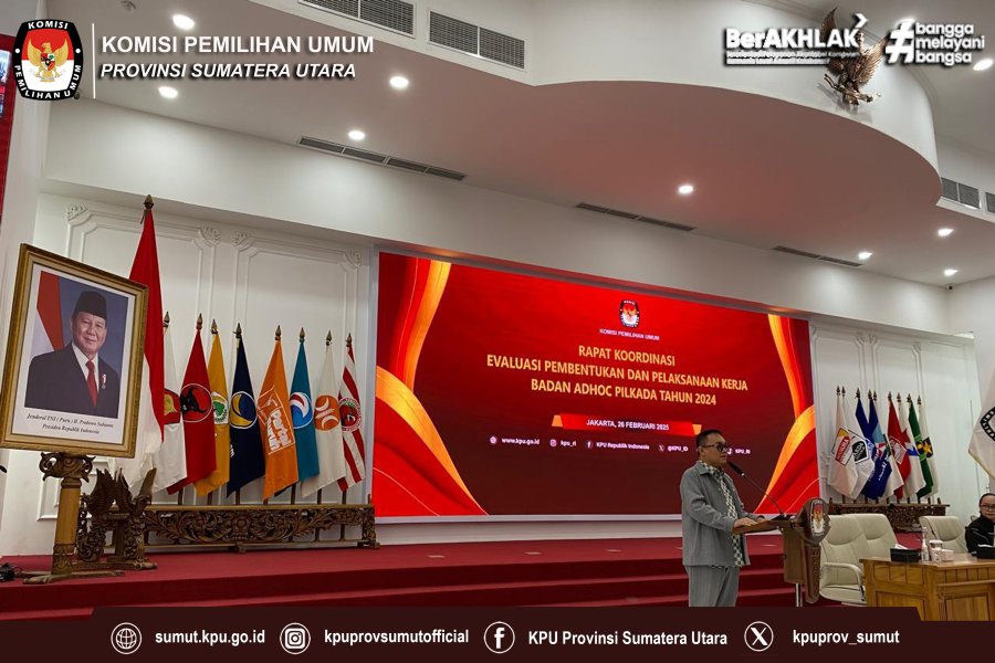 Ketua KPU Provinsi Sumatera Utara Agus Arifin dan Anggota KPU Provinsi Sumatera Utara Sitori Mendrofa hadir pada acara Launching Indeks Partisipasi Pemilu, Apresiasi Kontribusi Multipihak pada Penyelenggaraan Pemilu Tahun 2024 dan Bedah Buku, pada hari Senin (10/2/2025), di Ruang Sidang Utama KPU Jakarta. Pada sambutannya, Ketua KPU Mochammad Afifuddin mengucapkan terimakasih kepada seluruh pihak yang telah membantu KPU, terutama dalam hal sosialisasi Pemilu Serentak Tahun 2024. Afif juga menyampaikan bahwa tingkat partisipasi pada Pemilu 2024 sebesar 82 persen ini sungguh luar biasa, jika dibandingkan dengan negara lain, mengingat sistem pemilihan di Indonesia yang masih tidak mewajibkan, masih menjadi hak pilih. Selain itu, tahun 2024 ini pertama kali dalam sejarah Pemilu legislatif dan presiden dilaksanakan serentak, serta Pilkada juga di tahun yang sama. Pada kesempatan tersebut, KPU menyerahkan penghargaan kepada 36 (tiga puluh enam) instansi dari Kementerian/Lembaga, BUMN, BUMD, Perusahaan Swasta, yang telah berkontribusi pada sosialisasi Pemilu Tahun 2024, dan Launching Indeks Partisipasi Pemilu.