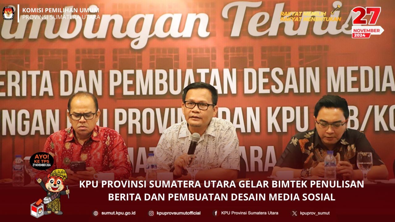 #TemanPemilih, KPU Provinsi Sumatera Utara menggelar bimbingan teknis (bimtek) penulisan berita dan pembuatan desain media sosial di Lingkungan KPU Provinsi Sumatera Utara dan KPU Kabupaten/Kota Se-Sumatera Utara Pada Pemilihan Gubernur dan Wakil Gubernur, Bupati dan Wakil Bupati serta Walikota dan Wakil Walikota Tahun 2024 pada tanggal 8-9 Oktober 2024 di Hotel JW Marriott Medan.