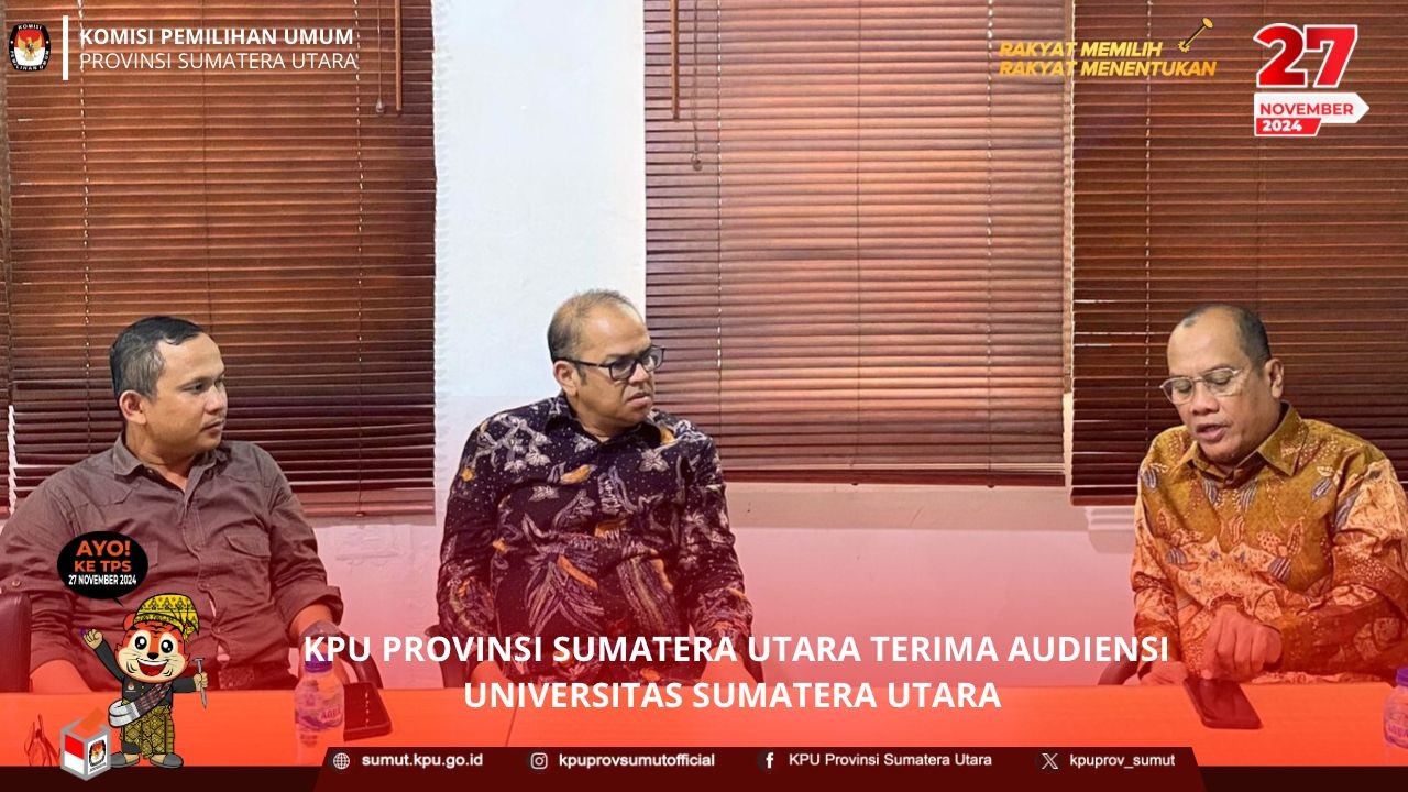 Dari KPU Provinsi Sumatera Utara dihadiri oleh Sitori Mendrofa Anggota KPU Provinsi Sumatera Utara Divisi Sosdiklih dan Parmas, Maruli Pasaribu Kabag TPP dan Parhubmas, dan Hotmida Yoshi Hutabarat Operator Siparmas.