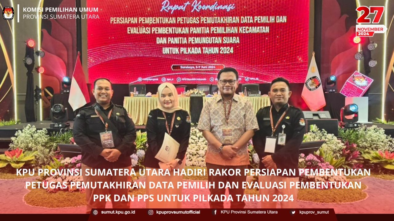 Rakor secara resmi dibuka oleh Robby Effendi Anggota KPU Provinsi Sumatera Utara, yang didampingi oleh Sitori Mendrofa dan El Suhaimi Anggota KPU Provinsi Sumatera Utara, dan Evy Ratimah Hafsah Fungsional Ahli Madya Penata Kelola Pemilu.