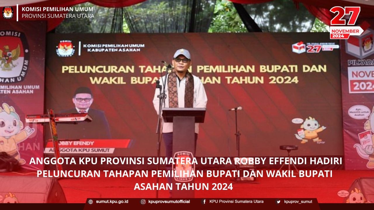 Robby Effendi Anggota KPU Provinsi Sumatera Utara menghadiri peluncuran tahapan Pemilihan Bupati dan Wakil Bupati Kabupaten Asahan Tahun 2024 pada hari Minggu (26/05/24) di Taman Hutan Kota Taufan Gama Simatupang Kisaran.