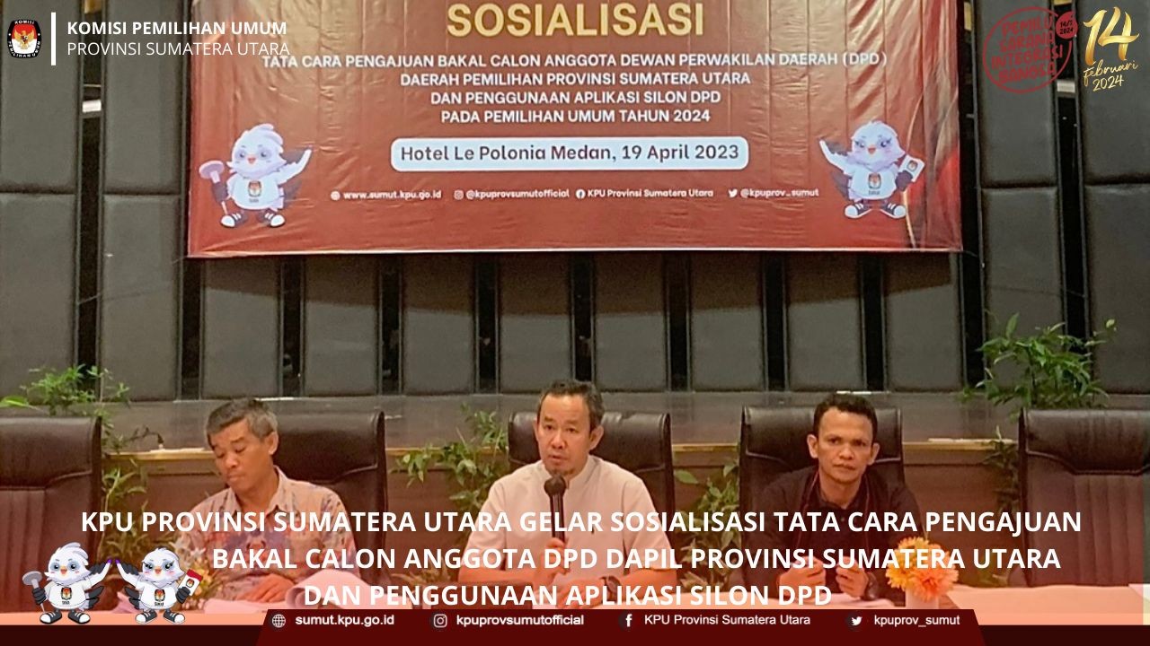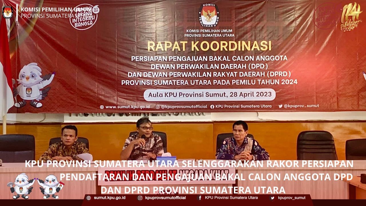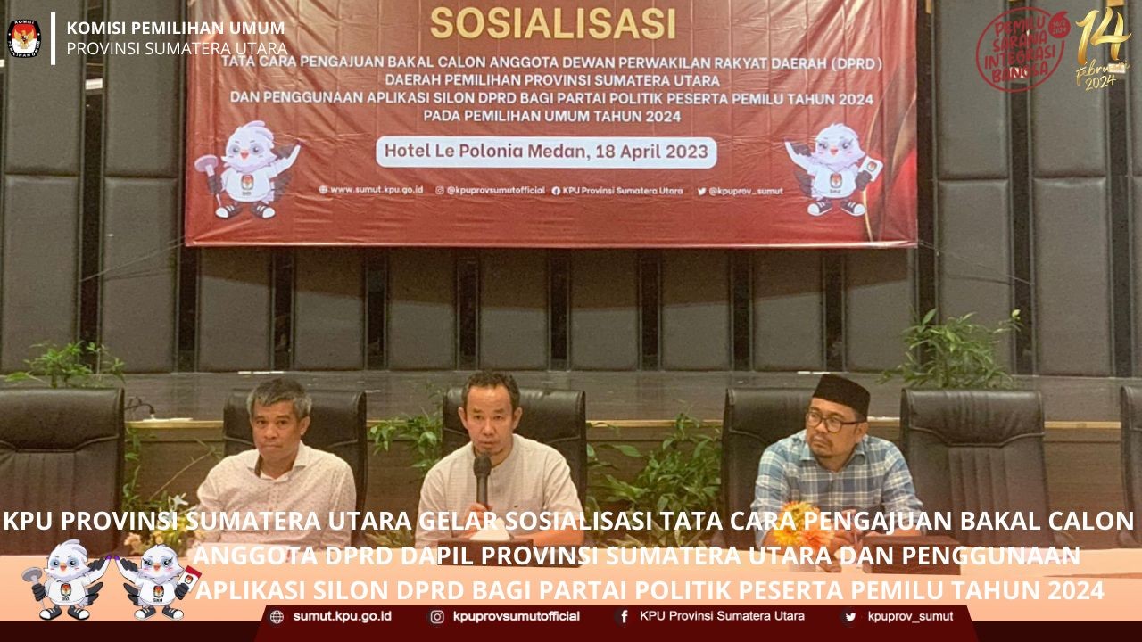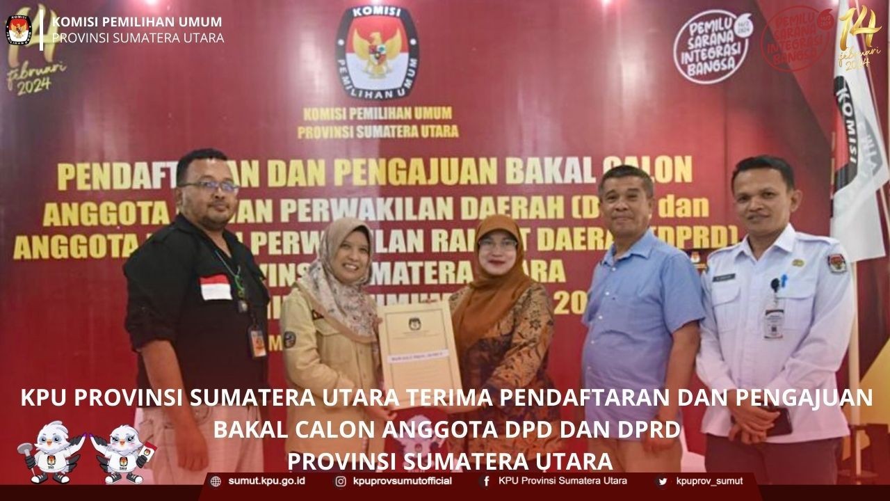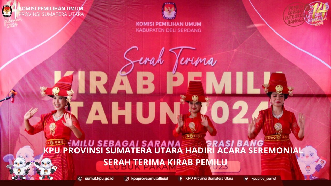 KPU Provinsi Sumatera Utara Menghadiri Acara Seremonial Serah Terima Kirab Pemilu Tahun 2024 KPU Provinsi Sumatera Utara menghadiri acara seremonial serah terima kirab pemilu tahun 2024 "Pemilu Sebagai Sarana Integrasi Bangsa" yang diterima langsung oleh KPU Kabupaten Deli Serdang dari KPU Kota Medan pada hari Senin (01/05/2023) di Halaman Kantor KPU Kabupaten Deli Serdang. Dari KPU Provinsi Sumatera Utara, acara tersebut dihadiri oleh Benget Silitonga selaku Anggota KPU Divisi Sosialisasi, Pendidikan Pemilih dan Partisipasi Masyarakat, Rina Zuraina selaku Kasubbag Partisipasi dan Hubungan Masyarakat, dan beberapa jajaran staf yang turun menghadiri acara serah terima estafet kirab pemilu tahun 2024. "Kirab Pemilu ini merupakan suatu program nasional yang dirancang untuk membumikan pemilu ke tengah masyarakat", kata Benget pada kesempatan tersebut. Turut hadir dan memberikan kata sambutan, HM. Ali Yusuf Siregar Wakil Bupati Deli Serdang, Syahrial Effendi Ketua KPU Kabupaten Deli Serdang, dan Agussyah R Damanik Ketua KPU Kota Medan. Pada acara tersebut juga dilaksanakan penandatanganan berita acara serah terima kirab pemilu dari KPU Kota Medan kepada KPU Kabupaten Deli Serdang, sebagai penanda dimulainya kirab pemilu di Kabupaten Deli Serdang yang diselenggarakan pada tanggal 1 Mei 2023 sampai dengan 5 Mei 2023.