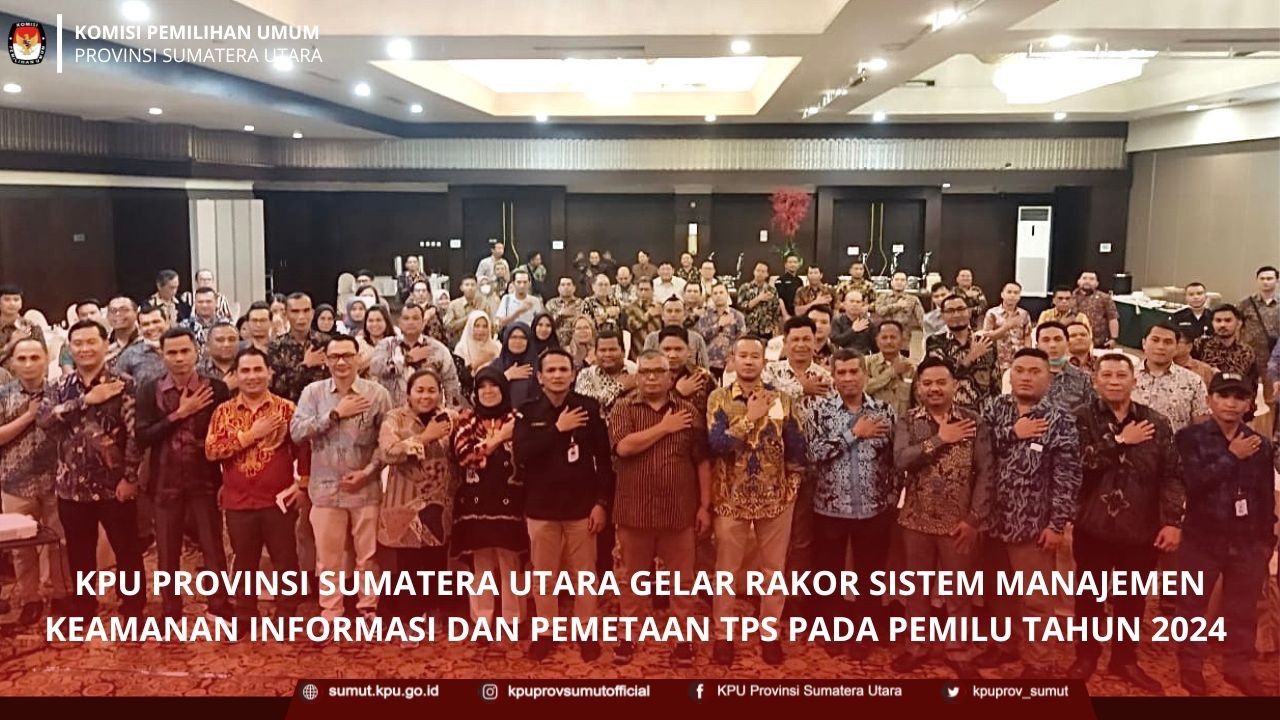 Rapat Koordinasi Peningkatan Kapasitas Pengelolaan Jaringan Dokumentasi dan Informasi Hukum KPU Provinsi Sumatera Utara menyelenggarakan Rapat Koordinasi (Rakor) Peningkatan Kapasitas Pengelolaan Jaringan Dokumentasi dan Informasi Hukum (JDIH) Komisi Pemilihan Umum Bagi KPU Kabupaten/Kota se-Sumatera Utara, yang dilaksanakan pada tanggal 20 sampai dengan 21 Desember 2022 di Baga Resort Hotel, Kabupaten Nias Selatan. Rapat Koordinasi dibuka secara resmi oleh Mulia Banurea Anggota KPU Provinsi Sumatera Utara, yang didampingi oleh Anggota KPU Provinsi Sumatera Utara Ira Wirtati dan Syafrial Syah. Rakor ini diselenggarakan guna memiliki pemahaman yang sama terhadap teknis pembuatan abstrak dan standar pengelolaan dokumentasi dan informasi hukum, serta memahami Mekanisme Pengelolaan JDIH dan Pengisian Metadata Informasi Hukum. Rakor ini diikuti oleh Divisi Hukum dan Pengawasan, Kasubbag Hukum dan SDM beserta Operator JDIH Kabupaten/Kota se-Sumatera Utara. Rapat Koordinasi Peningkatan Kapasitas Pengelolaan Jaringan Dokumentasi dan Informasi Hukum KPU Provinsi Sumatera Utara menyelenggarakan Rapat Koordinasi (Rakor) Peningkatan Kapasitas Pengelolaan Jaringan Dokumentasi dan Informasi Hukum (JDIH) Komisi Pemilihan Umum Bagi KPU Kabupaten/Kota se-Sumatera Utara, yang dilaksanakan pada tanggal 20 sampai dengan 21 Desember 2022 di Baga Resort Hotel, Kabupaten Nias Selatan. Rapat Koordinasi dibuka secara resmi oleh Mulia Banurea Anggota KPU Provinsi Sumatera Utara, yang didampingi oleh Anggota KPU Provinsi Sumatera Utara Ira Wirtati dan Syafrial Syah. Rakor ini diselenggarakan guna memiliki pemahaman yang sama terhadap teknis pembuatan abstrak dan standar pengelolaan dokumentasi dan informasi hukum, serta memahami Mekanisme Pengelolaan JDIH dan Pengisian Metadata Informasi Hukum. Rakor ini diikuti oleh Divisi Hukum dan Pengawasan, Kasubbag Hukum dan SDM beserta Operator JDIH Kabupaten/Kota se-Sumatera Utara.