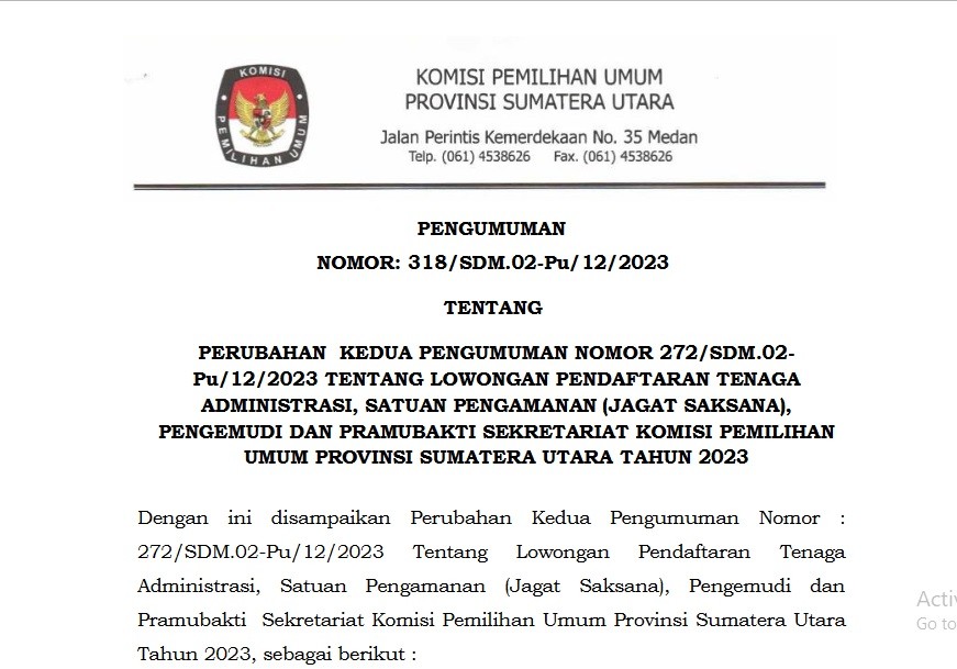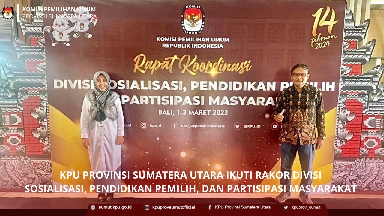 KPU Provinsi Sumatera Utara menggelar rapat rekapitulasi hasil verifikasi faktual tahap kesatu persyaratan dukungan minimal pemilih Bakal Calon Anggota Dewan Perwakilan Daerah (DPD) daerah pemilihan (dapil) Provinsi Sumatera Utara pada Pemilu Tahun 2024 di Grand Cityhall Hotel Medan pada hari Rabu (01/03/2023), yang turut dihadiri oleh Henry Sitinjak dan Hardi Munthe Anggota Bawaslu Provinsi Sumatera Utara, Bakal Calon Anggota DPD Daerah Pemilihan Provinsi Sumatera Utara beserta LO, dan diikuti oleh Anggota KPU Divisi Teknis Penyelenggaraan Pemilu, Kasubbag Teknis dan Parhubmas, dan Operator SILON KPU Kabupaten/Kota Se-Sumatera Utara.