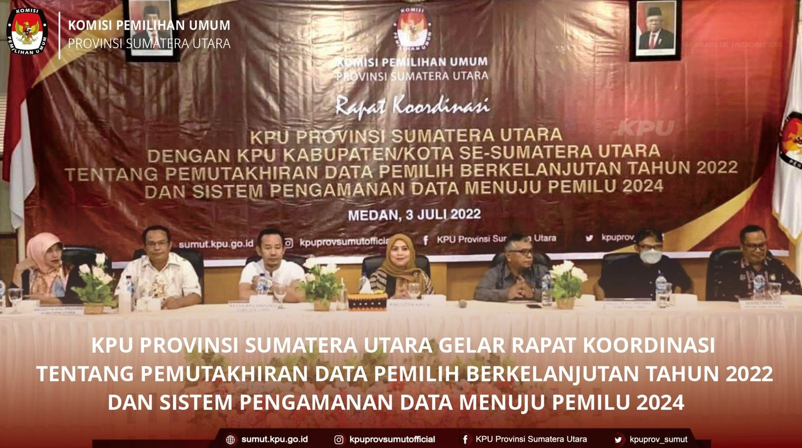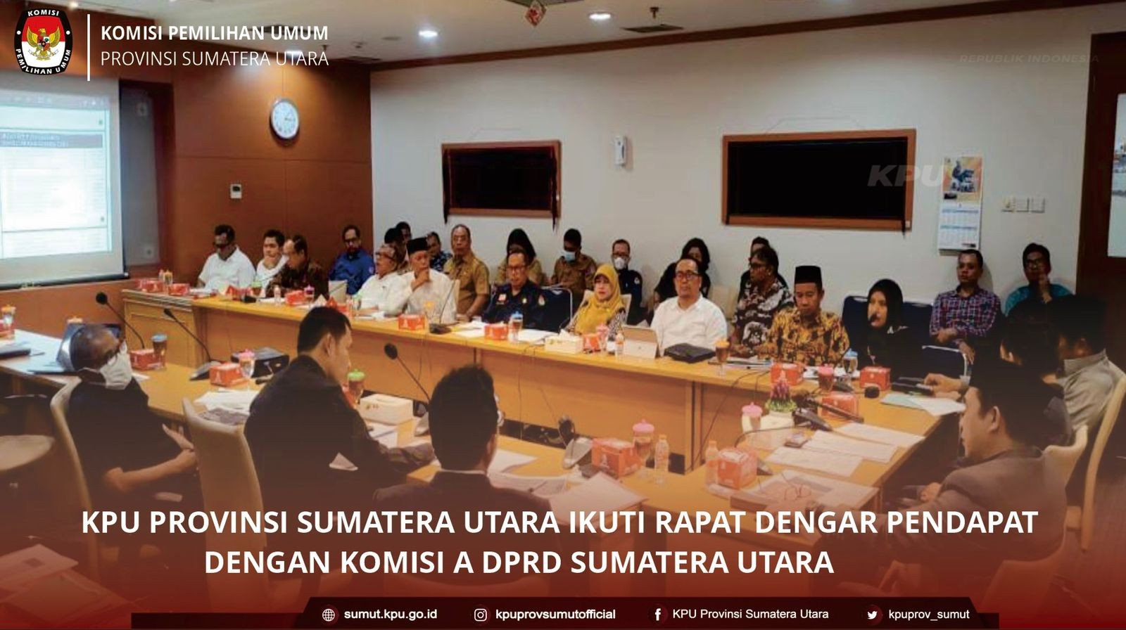 KPU Provinsi Sumatera Utara Rapat Kerja/Dengar Pendapat dengan Komisi A DPRD Sumatera Utara KPU Provinsi Sumatera Utara – Medan, KPU Provinsi Sumatera Utara mengikuti Rapat Kerja/Dengar Pendapat dengan Komisi A DPRD Sumatera Utara terkait Alokasi Anggaran Persiapan Pileg, Pilpres, dan Pilkada Tahun 2024 di Ruang Rapat Komisi A DPRD Sumatera Utara pada hari Selasa (05/07/2022). Rapat Kerja/Dengar Pendapat ini dihadiri oleh Ketua KPU Provinsi Sumatera Utara Herdensi, Anggota KPU Provinsi Sumatera Utara Mulia Banurea, Ira Wirtati, Yulhasni, Syafrial Syah, Benget Silitonga dan Sekretaris KPU Provinsi Sumatera Utara Irwan Zuhdi Siregar. Rapat Kerja/Dengar Pendapat ini turut dihadiri oleh Biro Hukum Setdaprovsu, Biro Pemerintahan Otda dan Kerjasama Setda Provsu, Bakesbangpol Provinsi Sumatera Utara, BPKAD Provinsi Sumatera Utara, serta Ketua dan Anggota Bawaslu Provinsi Sumatera Utara. Pada Rapat Kerja/Dengar Pendapat tersebut, KPU Provinsi Sumatera Utara memaparkan rencana kebutuhan anggaran pemilihan Gubernur dan Wakil Gubernur Sumatera Utara yang akan dilaksanakan pada Tahun 2024. Muhammad Andri Alfisah Ketua Komisi A DPRD Sumatera Utara didampingi oleh Anggota Komisi A DPRD Sumatera Utara dan Wakil Ketua DPRD Sumatera Utara Irham Buana Nasution menyarankan untuk membahas rencana kebutuhan anggaran tersebut dengan melibatkan berbagai instansi yang berwenang secara lebih luas.