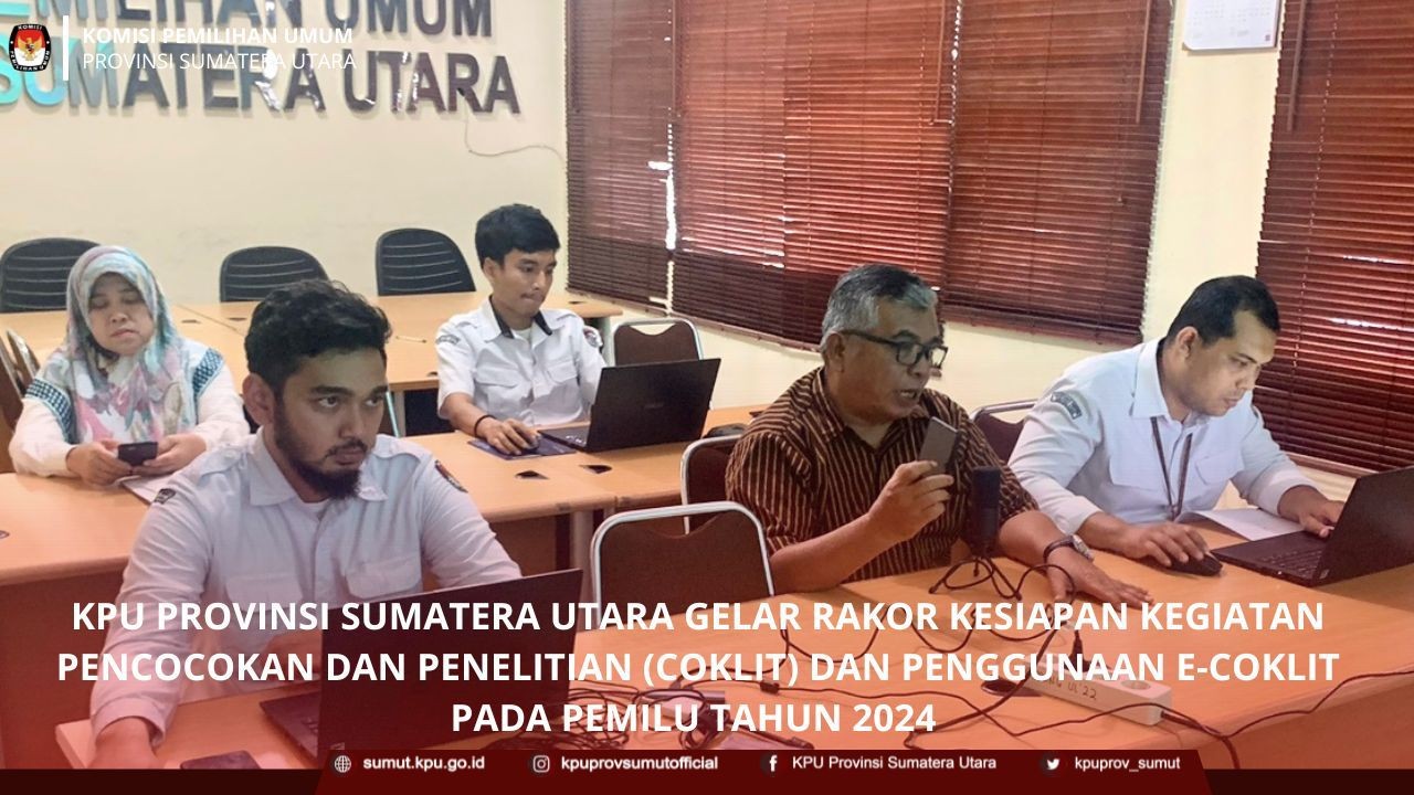 KPU Provinsi Sumatera Utara Gelar Rakor Kesiapan Kegiatan Pencocokan dan Penelitian (Coklit) dan Penggunaan E-Coklit pada Pemilu Tahun 2024 KPU Provinsi Sumatera Utara menggelar Rapat Koordinasi (Rakor) Kesiapan Kegiatan Pencocokan dan Penelitian (Coklit) dan Penggunaan E-Coklit pada Pemilu Tahun 2024 secara daring via zoom pada hari Kamis (02/02/2023), yang diikuti oleh KPU Kabupaten/Kota Se-Sumatera Utara. Rakor ini dipandu oleh Anggota KPU Provinsi Sumatera Utara Divisi Data dan Informasi Yulhasni , didampingi oleh Kepala Bagian Perencanaan Data dan Informasi Kartina Waty Harahap, Kepala Subbagian Data dan Informasi Dana Permana, dan Staf Subbag Datin KPU Provinsi Sumatera Utara. Dalam arahannya, Yulhasni menyampaikan bahwa sebelum tanggal 6 Februari 2024, agar data pemilih yang sudah disusun per TPS dicermati kembali apakah sudah sesuai dengan prinsip pemetaan TPS sebagaimana dimaksud dalam Pasal 15 PKPU No 7 Tahun 2022, yaitu KPU Kabupaten/Kota menyusun Daftar Pemilih berdasarkan data hasil penyandingan Daftar Pemilih disusun berbasis TPS menggunakan formulir Model A-Daftar Pemilih yang dilakukan dengan membagi Pemilih untuk setiap TPS paling banyak 300 (tiga ratus) orang, dengan memperhatikan hal-hal berupa: tidak menggabungkan kelurahan/desa atau sebutan lain, kemudahan Pemilih ke TPS, tidak memisahkan Pemilih dalam 1 (satu) keluarga pada TPS yang berbeda, aspek geografis setempat, dan jarak dan waktu tempuh menuju TPS dengan memperhatikan tenggang waktu pemungutan suara.