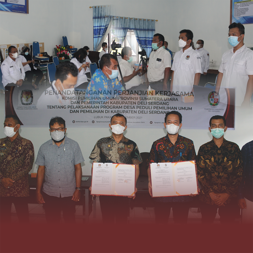 Kerjasama pelaksanaan Program DP3 diawali dengan penandatanganan MoU antara KPU Provinsi Sumut dengan Pemerintah Kabupaten Deli Serdang yang berlangsung di Aula Kantor Dinas PMD Kabupaten Deli Serdang Kamis (09/09/21). Pihak KPU Provinsi Sumut diwakili oleh Ketua Herdensi didampingi Ketua Divisi Sosialisasi, Pendidikan Pemilih dan Parmas Benget Silitonga, Ketua dan anggota KPU Kabupaten Deli Serdang, dan jajaran staf sekretariat KPU Sumut. Sementara Pihak Pemkab Deli Serdang diwakili oleh Kepala Dinas PMD Khairul Azman, jajaran Dinas PMD Pemkab Deli Serdang, Kepala Desa Tembung dan Kepala Desa Bandar Khalipah sebagai lokus pelaksanaan program DP3.