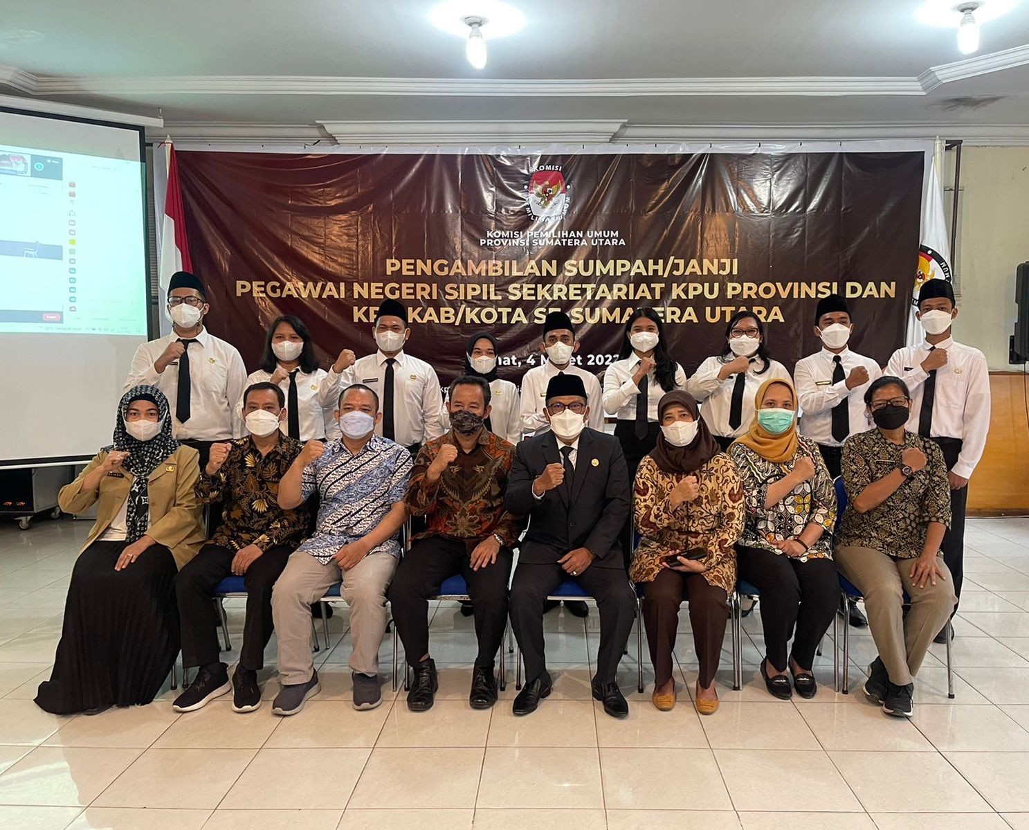 Sebanyak 455 ASN KPU se-Sumatera Utara Ikuti Latihan Dasar Tata Kelola Pemilu KPU Sumut-Medan. Dalam rangka meningkatkan kapasitas dan kompetensi ASN di lingkungan KPU se-Sumatera Utara, Pusat Pelatihan, Penelitian, dan Pengembangan (Puslalitbang) KPU RI melaksanakan Latihan Dasar (Latsar) tentang Tata Kelola Pemilu. Acara Latsar ini dikemas dalam bentuk pemaparan materi oleh Tim Pakar Sekretariat KPU RI dan diakhiri dengan Post Test pada hari Rabu (08/06/2022) di Santika Dyandra Hotel Medan. Para peserta Latsar terdiri dari para pejabat eselon II, III, IV dan staf pelaksana di lingkungan KPU se-Sumut. Dalam kata sambutannya, Sekretaris KPU Provinsi Sumatera Utara, A Irwan Zuhdi Siregar menyampaikan dari 465 orang jumlah ASN di sekretariat KPU Provinsi Sumut dan 33 KPU Kabupaten/Kota se-Sumut, peserta yang hadir ada sebanyak 455 orang. Sedangkan 10 orang lagi ada yang sedang cuti maupun lanjut studi S-2. Sedangkan Ketua KPU Provinsi Sumatera Utara, Herdensi dalam arahannya, mengapresiasi dan menyambut baik diadakannya Pelatihan Dasar Tata Kelola Pemilu ini. Menurut Herdensi, Latsar ini penting untuk meningkatkan kapasitas dan kompetensi dasar Tata Kelola Pemilu bagi ASN di Lingkungan Sekretariat KPU Provinsi Sumut dan 33 Sekretariat KPU Kabupaten/Kota se-Sumut. “Kita harus menyambut baik kegiatan ini demi kelancaran kepemiluan di negara kita. Sehingga diharapkan bagi jajaran staf sekretariat dapat mengikuti kegiatan ini dan menyerap materi dengan baik,” harap Herdensi. Sekretaris Jenderal KPU RI, Bernad Dermawan Sutrisno dalam arahan yang disampaikan secara daring menekankan kepada para peserta untuk bersama-sama menjadikan lembaga KPU yang profesional, berintegritas dan modern melalui peningkatan kapasitas SDM yang berkompeten, berintegritas, dan berwibawa Mewakili Ketua KPU RI saat membuka acara Latsar tersebut, Anggota KPU RI Divisi Sumber Daya Manusia, Organisasi, Pendidikan dan Pelatihan dan Penelitian dan Pengembangan, Parsadaan Harahap menyampaikan perlunya sinergi dalam bentuk komunikasi, soliditas, dan kompetensi diantara Komisioner KPU dengan Sekretariat KPU demi suksesnya penyelenggaraan Pemilu Serentak Tahun 2024. Dalam pemaparan materinya, narasumber yang juga merupakan anggota Tim Pakar Setjen KPU RI dan mantan anggota KPU Provinsi Sumut, Nazir Salim Manik menyampaikan tentang poin penyelenggara Pemilu tahun 2024 harus berintegritas. Narasumber juga menyampaikan poin terkait penguatan ASN di sekretariat KPU dalam penyelenggaraan Pemilu nantinya. Peserta juga diberikan materi tentang kesekretariatan penyelenggara Pemilu, kode etik PNS, serta dasar-dasar demokrasi electoral. Di akhir acara, peserta kemudian mengikuti Post Test sebagai salah satu tolak ukur terhadap pencapaian hasil Latsar Tata Kelola Pemilu. Kegiatan Latsar ini juga dihadiri oleh Kapuslalitbang Sekretariat Jenderal (Setjen) KPU RI Lucky Firnandy Majanto, Tim Pakar Kesetjenan KPU RI Nazir Salim Manik yang juga sebagai narasumber dan dipandu oleh Tenaga Ahli Mohamad Fadlillah sebagai fasilitator. Dari jajaran anggota KPU Sumut tampak hadir Ira Wirtati, Benget Silitonga, Mulia Banurea, Yulhasni, Syafrial Syah, dan Batara Manurung (JS)