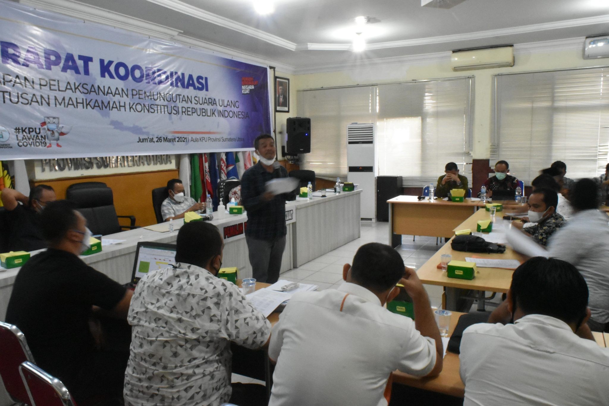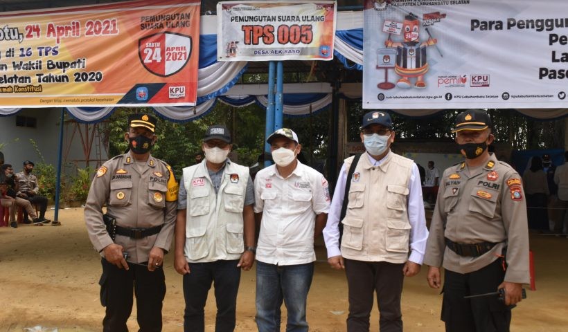KPU Sumut-Medan. Pemungutan Suara Ulang (PSU) pasca Putusan Mahkamah Konstitusi yang berlangsung di 16 TPS di Kabupaten Labuhanbatu Selatan (Labusel) mendapat apresiasi dari anggota KPU RI I Dewa Kade Wiarsa Raka Sandi hari Sabtu (24/04/21). Didampingi anggota KPU Provinsi Sumut Benget Silitonga dan Batara Manurung beserta staf KPU RI dan staf KPU Provinsi Sumut, I Dewa Kade Wiarsa Raka Sandi menilai pelaksanaan PSU relatif berjalan dengan baik. Hal ini dibuktikan dari kunjungan monitoring dan supervisi yang dilakukan oleh KPU RI bersama KPU Provinsi Sumut ke TPS 001 dan TPS 003 Desa Tanjung Selamat, Kecamatan Kampung Rakyat dan TPS 005 Desa Aek Raso, Kecamatan Torgamba. I Dewa Kade Wiarsa Raka Sandi bersama Benget Silitonga melihat antusias warga untuk datang ke TPS sangat tinggi. Begitu juga dengan kinerja jajaran KPU Kabupaten Labusel sampai ke jajaran penyelenggara di tingkat TPS telah bekerja dengan profesional, salah satuya dengan melakukan pencermatan secara cermat dan terukur terhadap DPT, DPTb, dan DPPh para calon pemilih yang ada di 16 TPS. Sepanjang kunjungan monitoring dan supervisi yang dilakukan oleh KPU RI dan KPU Provinsi Sumut bersama jajaran KPU Labusel, pelaksanaan pemungutan dan penghitungan suara di TPS berjalan dengan aman dan terkendali. Kondisi dan perlengkapan penyelenggaraan di TPS juga telah memenuhi syarat-syarat protokol kesehatan. Di akhir kunjungannya, I Dewa Kade Wiarsa Raka Sandi juga mengucapkan terima kasih yang sebesar-besarnya kepada jajaran TNI dan Polri yang juga turut mengamankan penyelenggaraan PSU di 16 TPS se-Kabupaten Labusel. Selanjutnya, jajaran KPU Labusel juga harus terus mengawal tahapan PSU selanjutnya yakni penetapan calon terpilih Bupati dan Wakil Bupati Labusel sampai tanggal 03 Mei 2021 (JS).