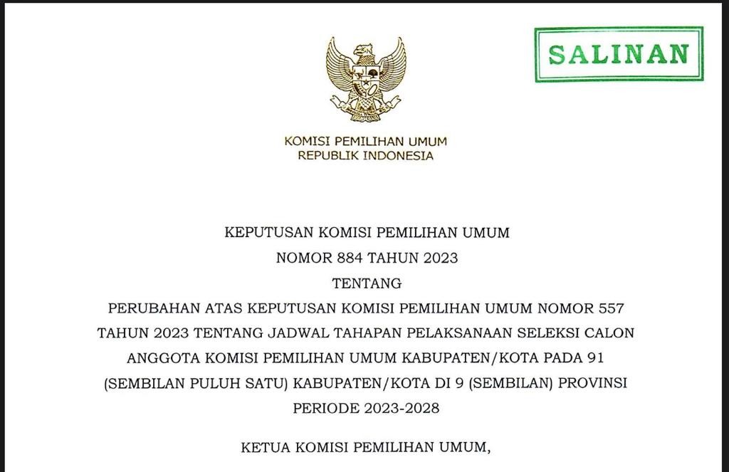 Perubahan Jadwal Tahapan Pelaksanaan Seleksi Calon Anggota KPU Kabuaten/Kota pada 91 Kabupaten dan 9 Provinsi Periode 2023-2028 Rabu, 12 Juli 2023 20:04 1473 LINK DOWNLOAD Baca Selengkapnya