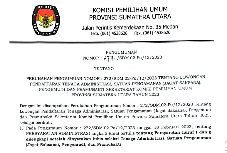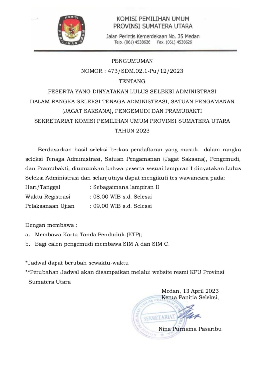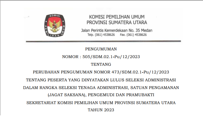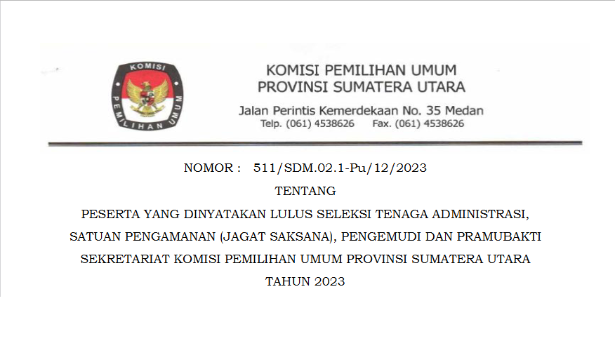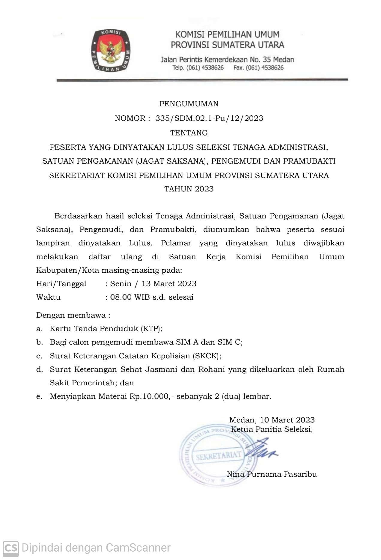 PENGUMUMAN Kamis, 15 Desember 2022 20:00 2139 https://sumut.kpu.go.id/public/sumut/dmdocuments/1671156180CamScanner 12-15-2022 19.49.pdf Baca Selengkapnya