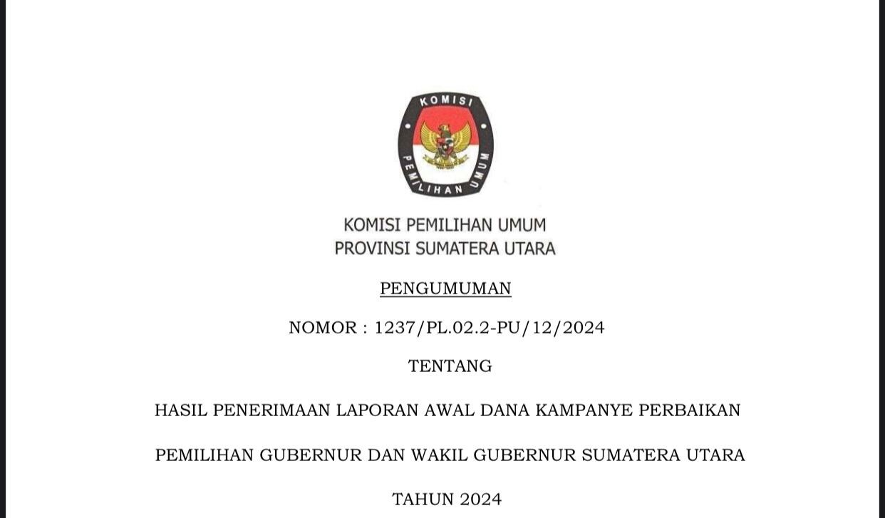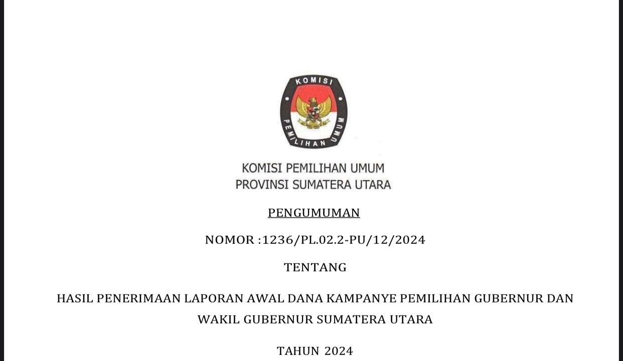 Hasil Penerimaan Laporan Awal Dana Kampanye Pemilihan Gubernur dan Wakil Gubernur Sumatera Utara Tahun 2024 Sabtu, 28 September 2024 12:10 71 LINK DOWNLOAD Baca Selengkapnya