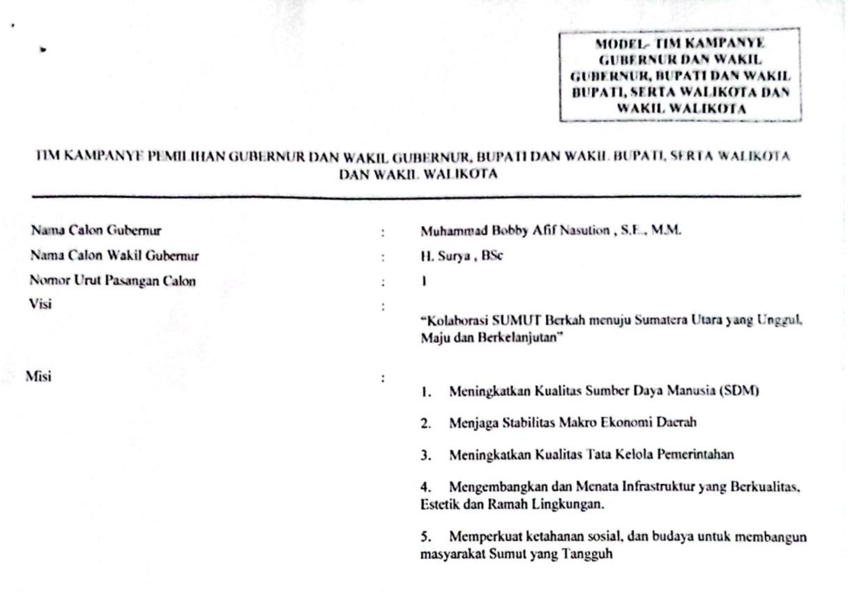 Tim Kampanye dan Penghubung Pasangan Calon Gubernur dan Wakil Gubernur Atas Nama Muhammad Bobby Afif Nasution dan H. Surya Kamis, 26 September 2024 12:21 61 LINK DOWNLOAD Baca Selengkapnya