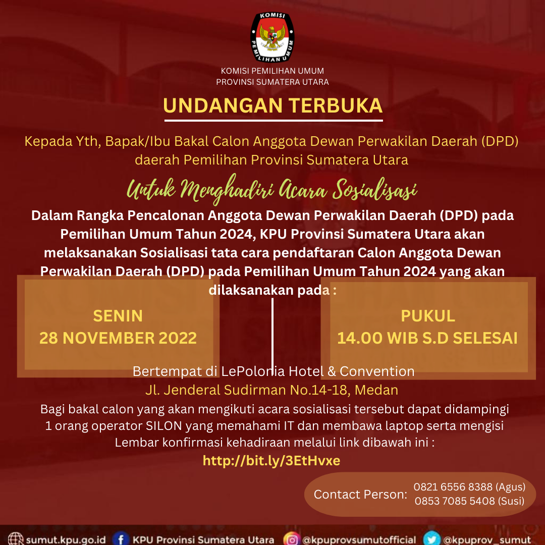 Sosialisasi Pencalonan Anggota Dewan Perwakilan Daerah (DPD) pada Pemilihan Umum Tahun 2024 Jumat, 25 November 2022 00:00 166 Baca Selengkapnya